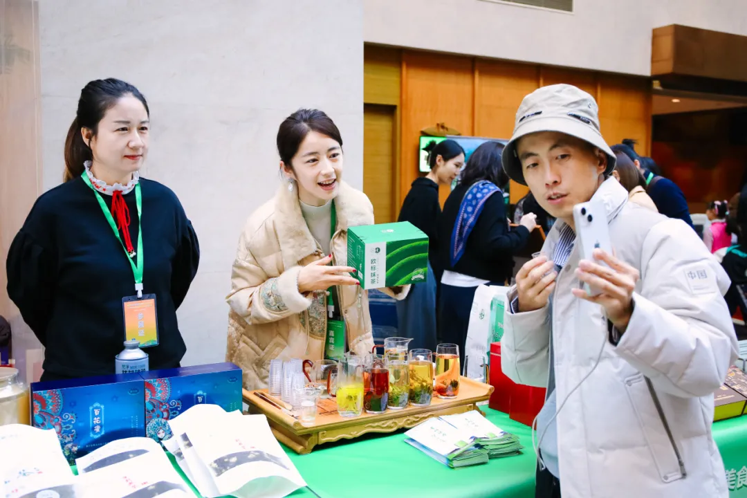 在“梵净山珍・健康养生”农特产品推介环节,铜仁市商务局向现场嘉宾系统展示了源自梵净山区域的优质农产品。“每一份‘梵净山珍’都是大自然的无私馈赠,蕴含着健康养生的价值理念。”铜仁市依托梵净山无可比拟的生态优势,大力发展绿色生态农业,致力于为追求健康生活的消费者提供安全、优质的农产品。石阡县政协与工商联也同期进行了石阡特色农产品推介,全面展示了该县在特色农业领域的丰硕成果。
