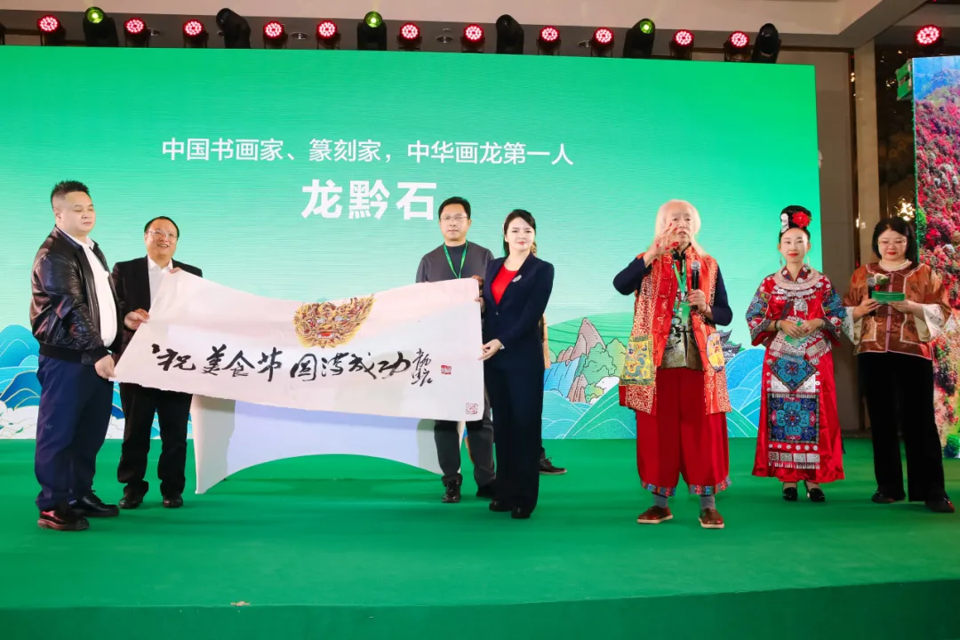 当晚的黔菜民族长桌盛宴成为活动的高潮。非遗美食贵州酸汤鱼、带皮黄牛肉、高原生态酸菜炒魔芋、健康养生折耳根腊肉、国家地理标志产品铜仁花生米、下饭神器脆哨土豆丁等地道佳肴,令宾客大快朵颐。恋爱豆腐果、大方手撕豆腐、清镇小黄粑、安顺小裹卷、都匀茶香鸭、贵阳辣子鸡、贵州烙锅、安顺夺夺粉、扎佐酸菜蹄膀、鸭爪火锅、农家腊肉香肠等琳琅满目的特色小吃,每一道都承载着浓郁的贵州风情与精彩故事。