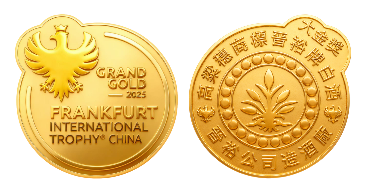 圖十九:2025年10月「高粱穗商標晉裕」牌白酒獲法蘭克福2025國際大獎賽「大金獎」獎章