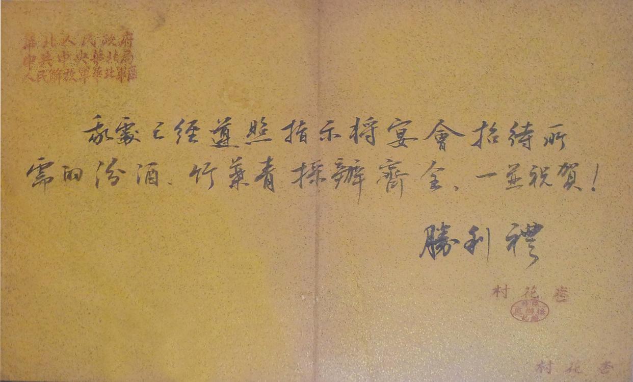 圖十五:1949年夏初,杏花村臨時采辦處給中共中央華北局、華北人民政府、人民解放軍華北軍區關於開國大典宴會招待所需的汾酒竹葉青酒采辦齊全的匯報信