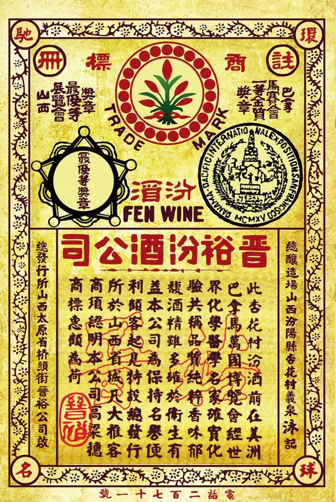 1919年晉裕汾酒公司成立後,先是采取「義泉泳」酒坊釀酒、晉裕公司賣酒的合作模式;1924年,晉裕汾酒公司於中國第一部《商標法》頒布實行之際率先註冊了中國第一枚專用於汾酒類商品的商標——「高粱穗」汾酒商標;1926年,晉裕汾酒公司在汾陽杏花村自建「晉裕公司造酒廠」;1933年,晉裕汾酒公司總經理楊得齡將汾酒釀造秘籍歸納為「七個必須」,中國第一個白酒標準釀造工藝由此誕生;1934年,「晉裕汾酒公司」兼並「義泉泳」酒坊,以現金及換股形式全面受讓了「義泉泳」酒坊的全部資產、字號、招牌、榮譽及股東,設立了「晉裕有限公司造酒廠事業部」,同時將杏花村「德厚成汾酒釀造廠」的釀造產能收歸旗下,晉裕汾酒事業進入成立以來的黃金發展期;1944年,晉裕汾酒公司在天津集股40萬元國幣,引入以樊世榮、蔚光年、耿祥鳳為首的127家津門汾商成為新股東;1948年汾陽解放,晉中行署為完成華北人民政府下達的為開國大典生產國宴用酒任務在晉裕公司造酒廠釀造汾酒、竹葉青酒;1949年,華北人民政府為「節約糧食增加稅收」實行酒類專燒專營,政府以租賃形式租用晉裕公司所屬「義泉泳酒坊的部分房屋及工用具」進行汾酒生產直至1955年;1951年,晉裕公司遵照政府指令進行資產重估;1952年,晉裕公司取得太原市人民政府核發的太工私字第2476號企業登記證,繼續在太原市橋頭街80號經營酒業,從而實現了新舊政體下經營主體的有效過渡及經營主業的有效延續;1955年晉裕汾酒公司因「商業轉工業」與太原私商蔚光文具廠合營而暫時歇業,直至2005年晉裕汾酒公司股東後人著手恢復晉裕公司。
